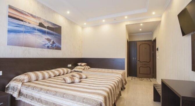Еще одно замечательное место с частным пляжем – Отель Жемчужина Моря. Здесь сервис и обстановка также на высшем уровне, хоть и с меньшим размахом, чем в курортном комплексе. Домиков несколько, и номера в них очень разнообразные. Кому-то придется по вкусу строгая и практичная обстановка, а иные предпочтут максимальный простор. Везде установлены качественные кондиционеры, телевизор, есть подключение к интернету.