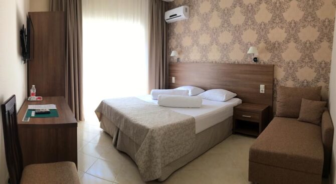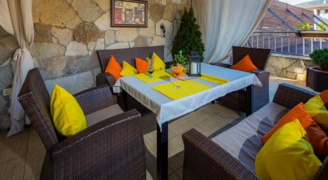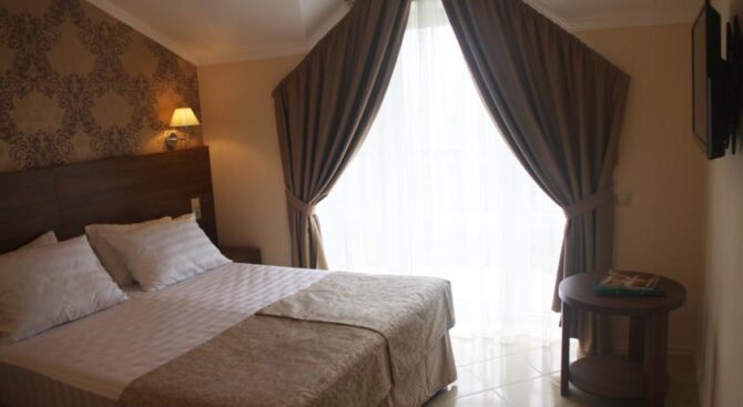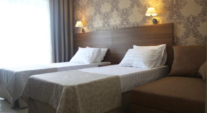 Второй вариант для отдыха – Отель Терраса. Он отличается тем, что расположен близко к центральному рынку и магазинам, а до побережья добираться дольше. Тут клиентам предоставляется много приятных бонусов, помимо стандартного набора удобств. Так средства гигиены для ванной комнаты даются совершенно бесплатно.