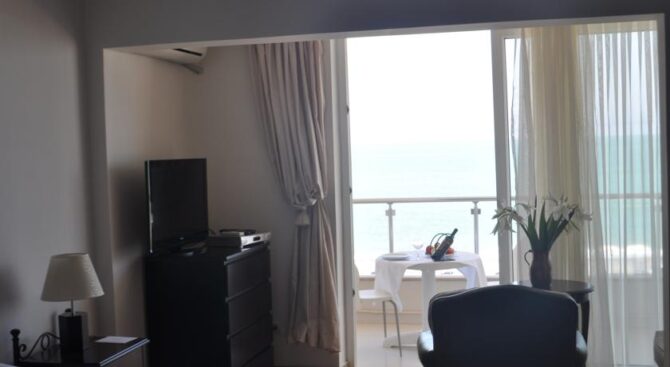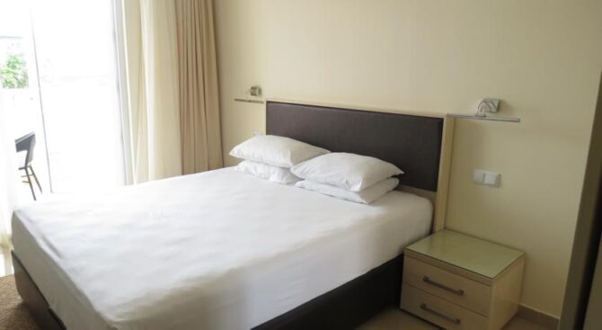 Пляж от этого отеля находится в двухминутной пешеходной доступности – всего 90 метров. Он является хорошим местом для отдыха на море. Номера отличаются определенным аскетизмом в интерьере, но при этом в них есть все, что необходимо для достаточно комфортного проживания. В них имеется телевизор и рабочий стол. Поселиться здесь можно в любое время дня и ночи — стойка ресепшен работает круглосуточно.