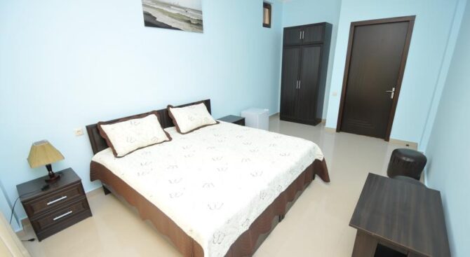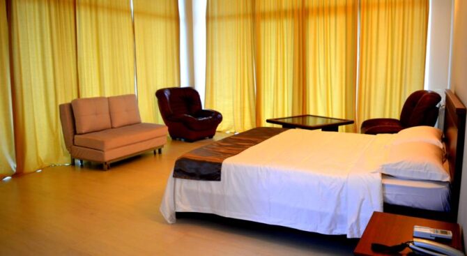 Определенный минимализм во внешнем виде отеля с лихвой компенсируется светлыми и просторными номерами. В каждом из них имеется кондиционер, телевизор и холодильник. Ванная комната оснащена необходимыми для мытья банными принадлежностями. Везде на территории отеля можно получить на бесплатной основе доступ к сетям WiFi.