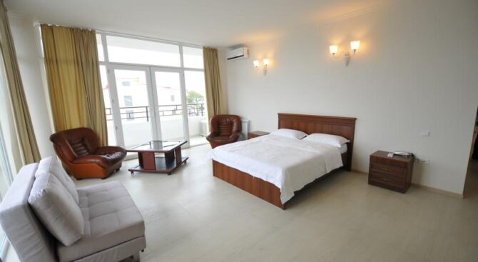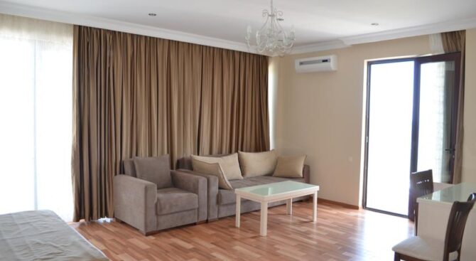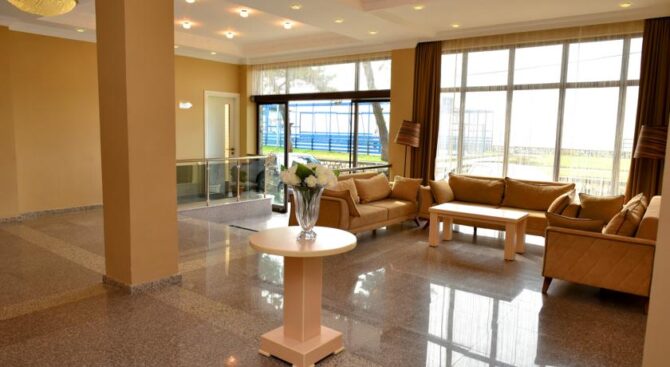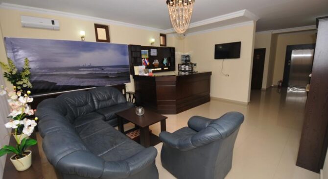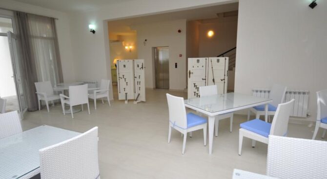 Стойка регистрации работает круглые сутки, поэтому поселиться можно в любое время, независимо от того, когда турист прибыл в Кобулети. Порадует посетителя камера хранения багажа, широкое помещение для проведения конференций. Любой жилец сможет наслаждать благоуханием сада. Понравится он и гостям с детьми – на его территории обустроена детская площадка.Море расположено всего в трехминутной пешеходной доступности.