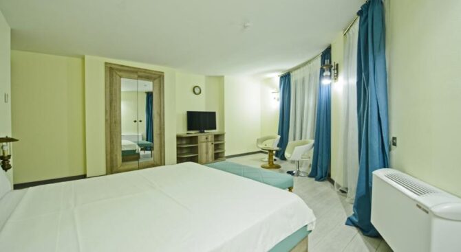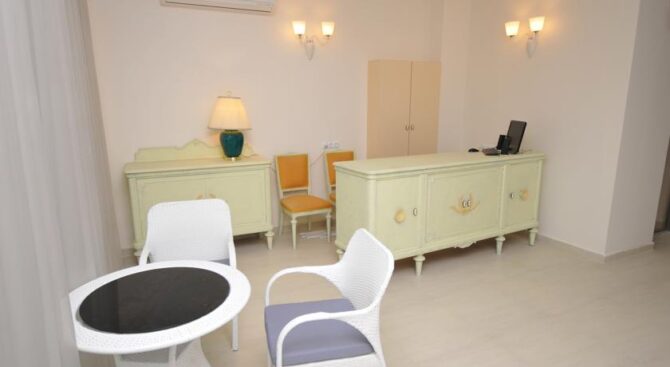 Это отель, который предлагает море ласкового солнца на просторных террасах. Желающим окунуться и поплавать понадобится всего пару минут, чтобы войти в эту водную стихию. Можно на выбор подобрать номер, окна которого выходят на море или изумительные горные пейзажи. Все они оснащены телевизором, сейфом и кондиционером, имеют ванную комнату, в которой расположены бесплатные банные принадлежности.
