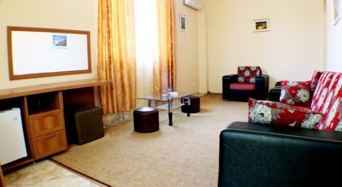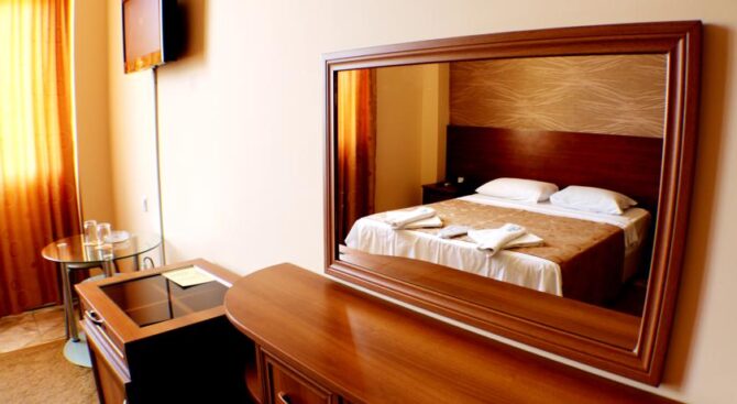 Независимо от того, на каком из номеров клиент остановит свой выбор, все они обладают достаточным уровнем для человека, который приехал на отдых, уложены плиткой от пола до потолка. Порадует обслуживание номеров и наличие в них плоского телевизора, ванная комната с бесплатными банными аксессуарами.