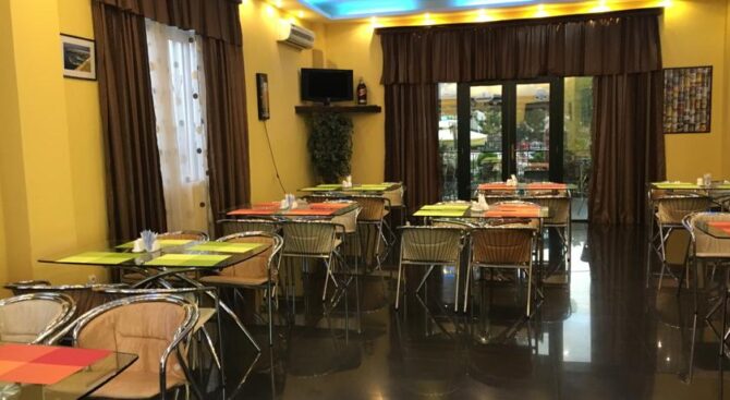 Питание организовано на базе собственного ресторана отеля. В нем можно отведать блюда национальной и европейской кухни, воспользовавшись шведским столом или заказать их по меню.