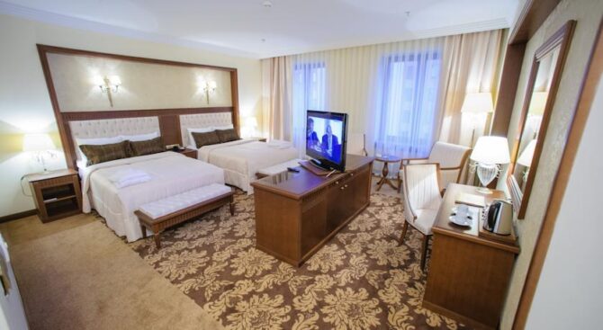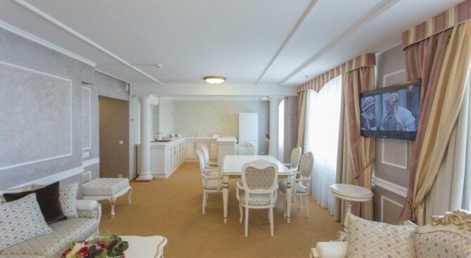 Каждый из номеров Президент-Отель, выполнен в современном европейском стиле. Он уже включает в себя собственную систему кондиционирования воздуха, телевизор с большим количеством трансляций на любой вкус, небольшую, но очень удобную ванную и маленький бар для напитков.