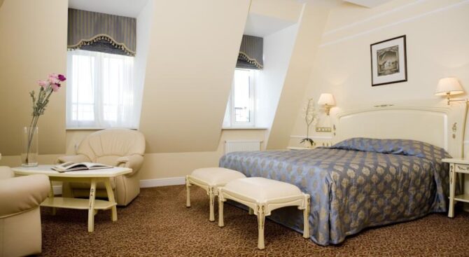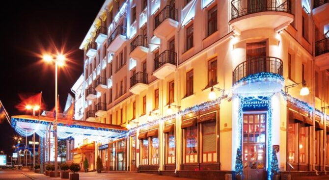 Этот бутик-отель имеет очень удобное расположение, — в центральной части Минска. Гости могут воспользоваться не только крытым бассейном и удобной сауной, но и посетить казино на территории этого курортного комплекса. Кроме этого, постояльцы отеля могут получить доступ к высокоскоростному интернету (для гостей этого заведения такая услуга предоставляется совершенно бесплатно). Помимо прочего, туристам на собственных или арендованных автомобилях можно воспользоваться бесплатными парковочными местами.