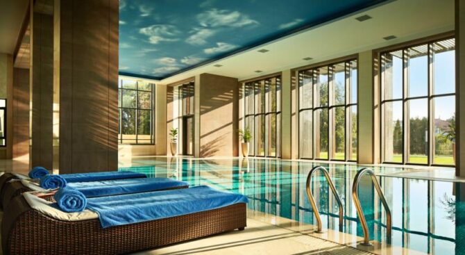Отель предлагает к услугам постояльцев не только бассейн крытого типа, который не закрывается круглый год, но и спортивный зал с современными тренажерами. Также на территории этого здания расположены спа-центр для тех кто желает оздоровить свое тело. При заселении каждому гостю отеля предоставляется доступ к бесплатному высокоскоростному интернету, а также право воспользоваться местами на частной парковке комплекса для отдыха.