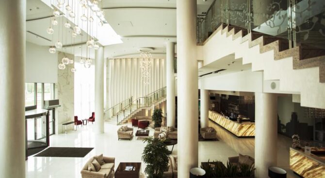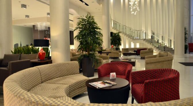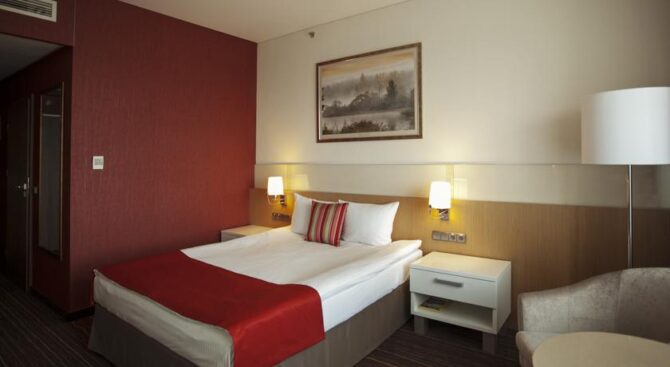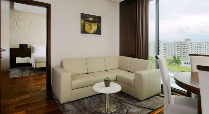 В этом белорусском отеле, располагающим крытым бассейном, понравится любому туристу, приезжающему на отдых в Минск. Ведь здесь есть все даже для самого искушенного путешественника, — современный центр для занятий фитнесом, сауна и турецкая баня. Помимо этого, во время заселения туристы получают доступ к высокоскоростной интернет. За эту услугу жильцам отеля не придется ничего платить, ведь стоимость уже включена в проживание.