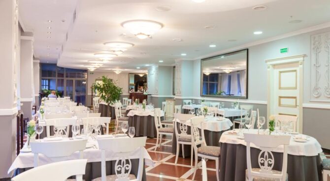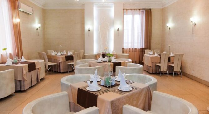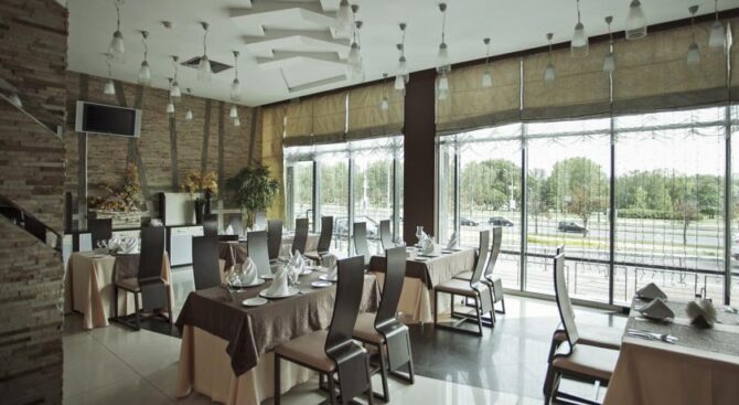 Путешественников накормят вкусной едой в ресторане, находящемся на территории комплекса для отдыха. На выбор посетителей этого отеля в Минске традиционные белорусские или европейские блюда, любовно приготовленные высококвалифицированными поварами.