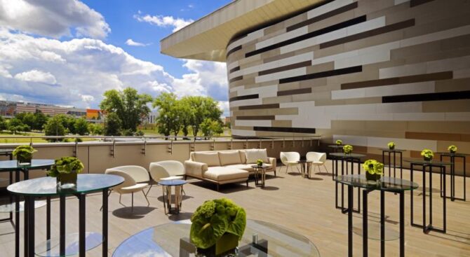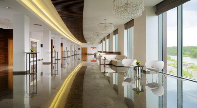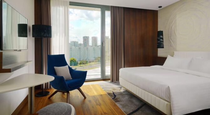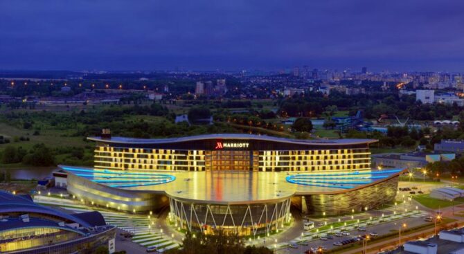 Из окон некоторых номеров Minsk Marriott Hotel открывается великолепный вид на реку. По всей территории этого минского отеля с бассейном проведен бесплатный интернет с высокой скоростью.
