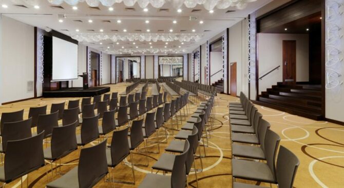 Тем путешественникам, которые приехали в это место по делам, связанным с бизнесом, отель рад предложить один из восьми залов для проведения конференций, бизнес-центр и зал для проведения банкетов. А также в здании имеется сауна и современный спортивный зал с удобными тренажерами.