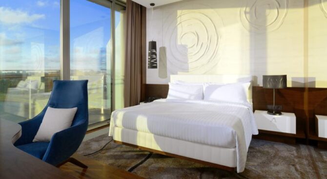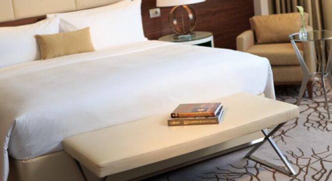 Каждый из номеров Renaissance Minsk Hotel располагает собственной системой кондиционирования воздуха, удобным столом для работы, телевизором, транслирующим большое количество каналов, и чайником, для того чтобы посетитель мог сам приготовить себе чай или кофе. Уютная ванная комната укомплектована феном.