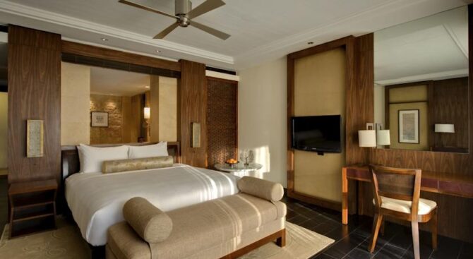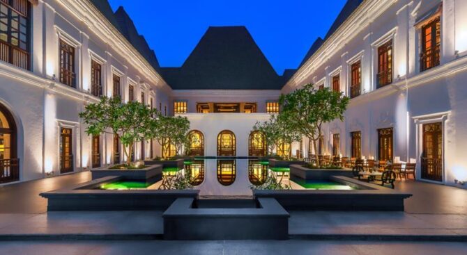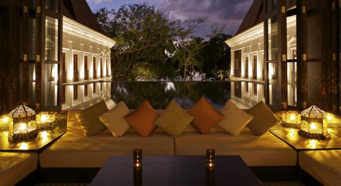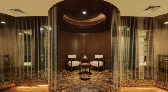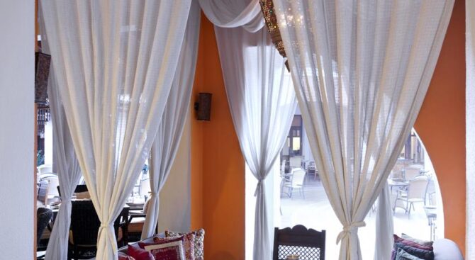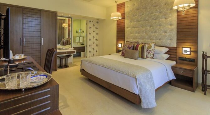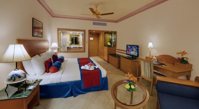 Здание отеля построено в стиле индийских дворцов. Внутри, в просторном атриуме находится изящный искусственный пруд с фонтанами, которые благодаря подсветке особенно эффектно смотрятся в ночное время. В самом отеле, а также на его собственном пляже отдыхающих встречают самые разнообразные рестораны с блюдами и напитками разных народов мира. Около бассейна можно отдохнуть в баре, выпив бокал вина или коктейля.