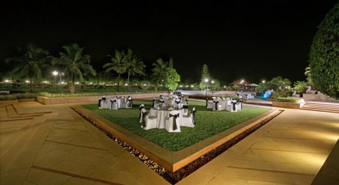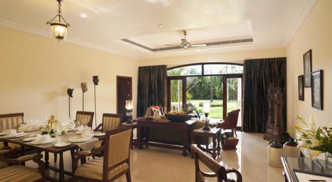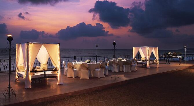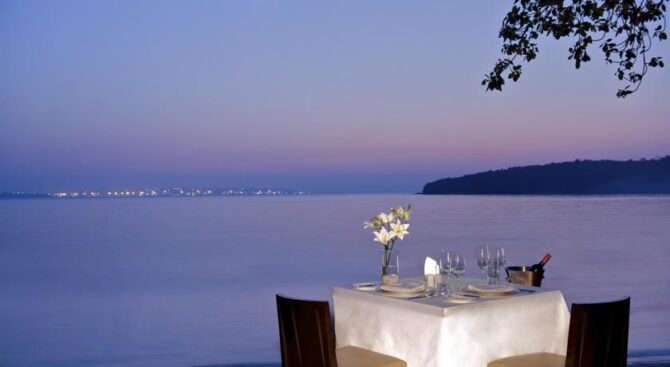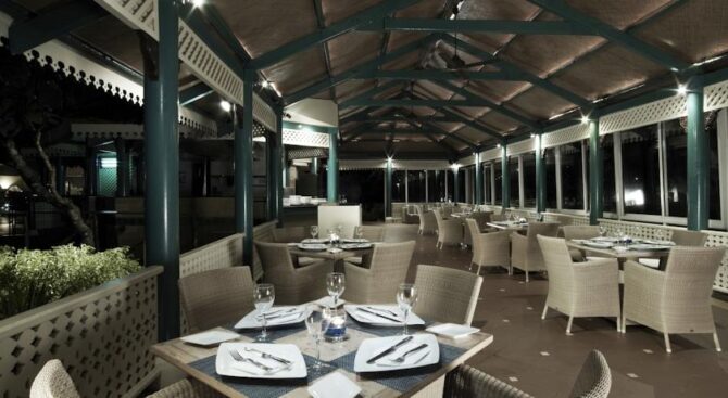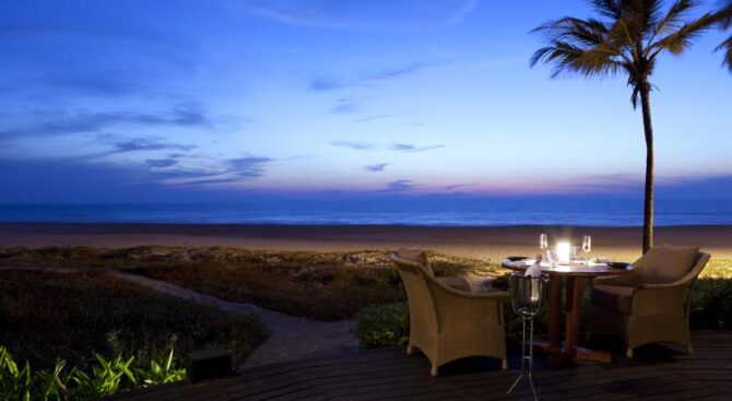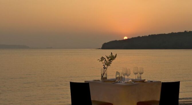 От пляжа Бага и форта Агуада отель отделяет около 50 км. Но в нескольких шагах от него есть роскошный, чистый пляж с рестораном, в котором подают блюда из морепродуктов. В других ресторанах отеля можно попробовать национальную кухню Гофф или итальянскую пасту и пиццу.