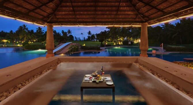 Высокую репутацию отеля на протяжении 5 лет поддерживают несколько ресторанов, в которых подаются изысканные и национальные блюда разных народов мира. Столы сервируются, как в роскошных интерьерах, в которых все пронизано индийским колоритом, так и на открытом воздухе. А круглосуточное обслуживание номеров позволяет устраивать приватные ужины наедине или в кругу деловых коллег, укрывшись от посторонних глаз.