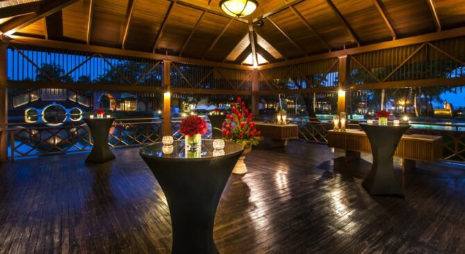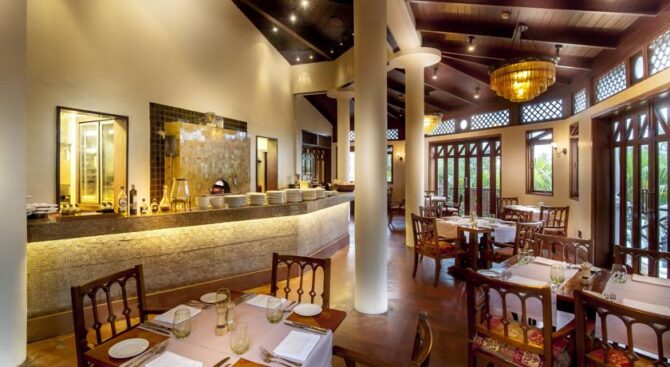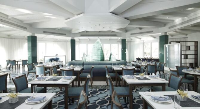 Внутренний двор отеля располагает большим открытым бассейном, рядом с которым находятся бары. Питание в отеле обеспечивают три ресторана, в которых можно познакомиться, как с блюдами национальной кухни, так и отведать морепродукты или итальянскую пасту. В изысканных интерьерах главного, национального ресторана подают завтраки в формате «шведский стол», а, оказавшись в вечернее время на пляже, можно выпить бокал вина, наблюдая за морским закатом.