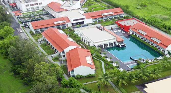 В белоснежном здании отеля Hotel Taj Exotica находится 140 номеров, а его территория представляет собой ландшафтный парк площадью более 22 гектаров. Расположение отеля особенно удобно для туристов – до аэропорта можно доехать менее чем за час, до города Маргао — за 10 мин, а, чтобы пройти к пляжу, нужно сделать всего несколько десятков шагов.