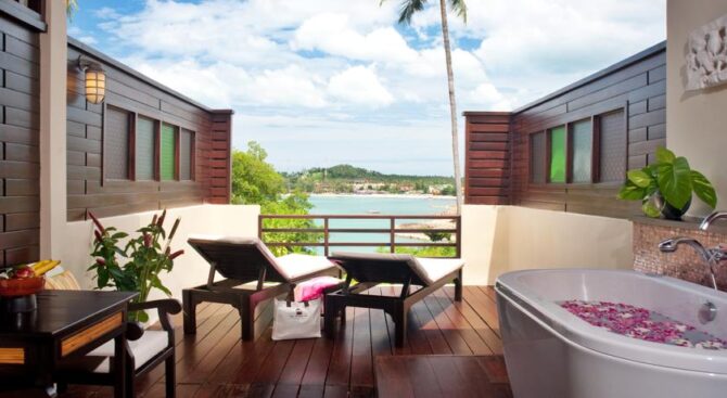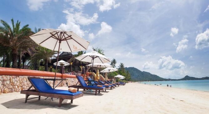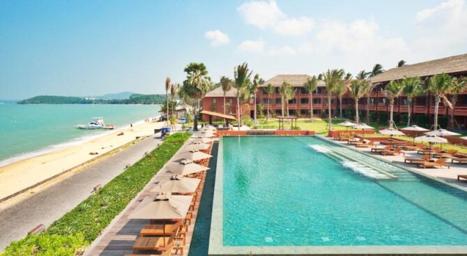 Отель Самуи на пляже Santiburi Beach Resort & Spa награжден 5 звездами и вполне оправдывает это. Находится он на пляже Маэ-Нам. Здесь вам предложат на выбор 71 номер: люкс, стандарт, вилла. Каждый из них оснащен всем необходимым для качественного и комфортного отдыха: кондиционеры, телевизор, мини-бар, халаты и тапочки, ванна и душ.