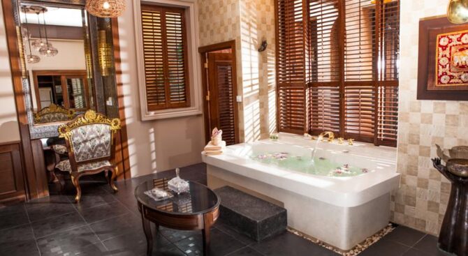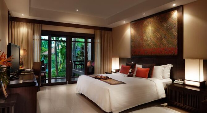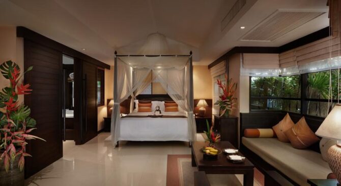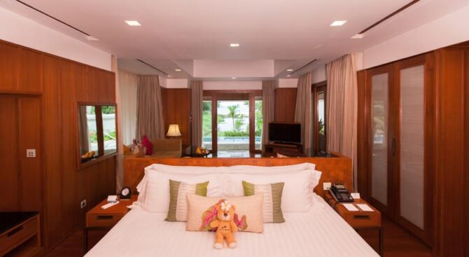 Каждый номер обустроен так, чтобы отдых в нем был по-настоящему королевский. Кроме того, здесь можно отдохнуть в СПА, посетить ресторан тайской и европейской кухни, выпить напитки в баре, или сходить в тренажерный зал. Если вы едете на отдых с животными, то здесь вам не откажут.