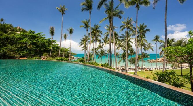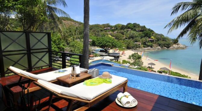 Отель Самуи на пляже Four Seasons Resort Koh Samui лучшее место для комфортного отдыха. Пятизвёздочный комплекс имеет комфортабельные номера (всего 74) со всеми удобствами. Находится он в городе Бан-Банг-По. Изюминкой отеля – бассейн в каждом номере. Каждый гость может полюбоваться Сиамским заливом. Выйдя из номера, отдыхающий попадает в райский сад, где можно отдохнуть от палящего солнца. Чтобы добраться до пляжа отеля, нужно все-лишь спустится по склону.