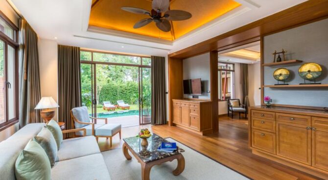 Номерные виллы Ammatara Pura декорированы в коричневых и бежевых цветах. Стиль оформления – традиционный тайский с элементами королевской роскоши. На каждой вилле есть собственная зона для обеда, современный телевизор и мини-бар. Отличительной особенностью является наличие «персонального бассейна» возле каждой виллы.
