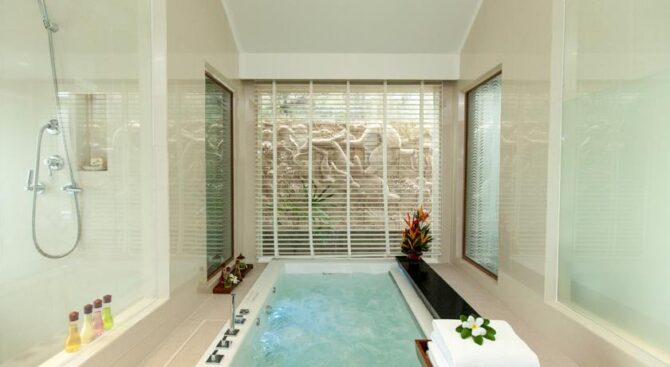 Все номера имеют собственную террасу с шезлонгами, где можно наслаждаться рассветом, или закатом. Сам комплекс предлагает гостям три ресторана с местной и европейской кухней, бары, бассейны, спа-центры и тренажерный зал. Некоторые номера имеют открытую ванну на террасе. Здесь можно много развлечений: водные виды спорта, настольный теннис и многое другое.