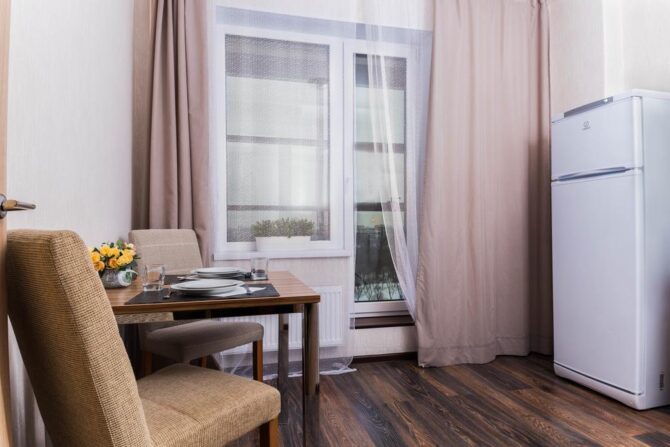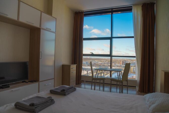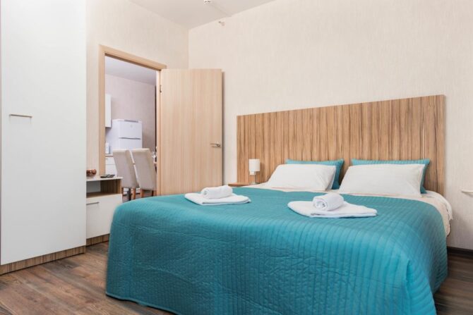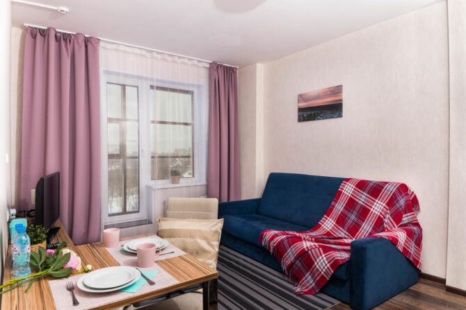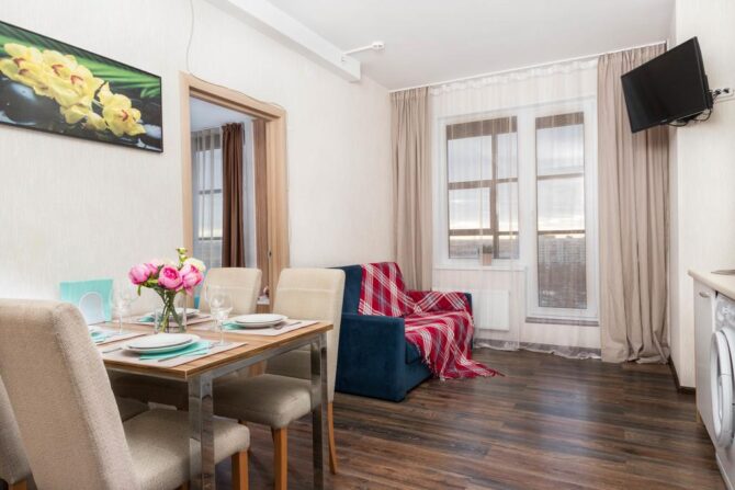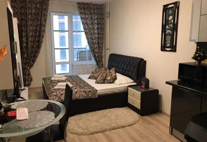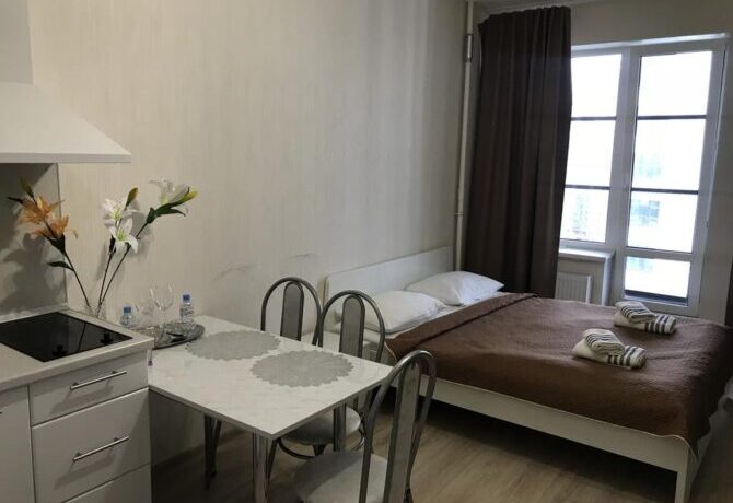 Современный апарт-отель находится в 15 минутах езды от аэропорта по Пулковскому шоссе. Апартаменты расположены в Жилом Комплексе «Салют!». Номер-студия рассчитан на 2-х человек, но при необходимости владельцы добавляют раскладушку для 3-го жильца. Можно приезжать с домашними животными. Апартаменты с отдельной спальней размещают до 4 постояльцев. Лоджии квартир с панорамным остеклением. На первом этаже ЖК находятся магазины, спортивный зал, салон красоты, ресторан и пекарня. Постоянным клиентам предоставляются 10% скидки.