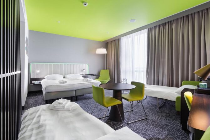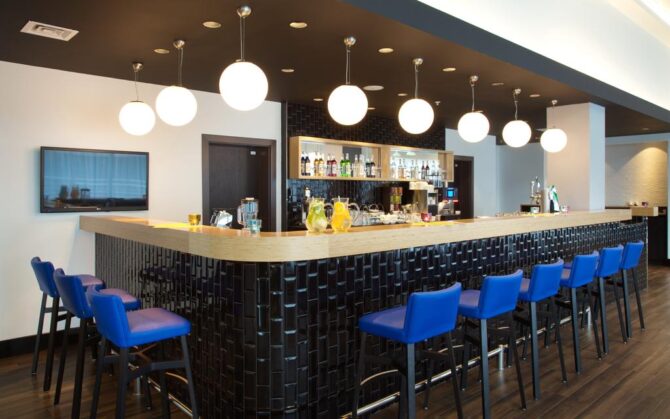 По прибытию в аэропорт Пулково можно остановиться в сетевом отеле Park Inn by Radisson. Он соединен с терминалом крытым отапливаемым переходом. Гостей ждут яркие номера класса Стандарт, Супериор и Джуниор Люкс. К услугам постояльцев – тренажерный зал, комната для хранения багажа, прачечная. В здании оборудованы 18 залов для проведения конференций, встреч и переговоров. Утром накрывается шведский стол для завтрака. Ресторан Live-Inn специализируется на американской кухне, блюда подаются по меню. Лобби-бар работает круглосуточно. Здесь принимают с домашними питомцами. Дорога от отеля до Петербурга занимает 40 минут.