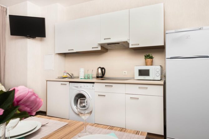 «Откровенно понравилась кровать с ортопедическим матрасом. Я не говорю о всех других принадлежностях. На кухне есть все, вплоть до необходимых продуктов – сахар, растительное масло, соль, чай, кофе, уксус. Ванная комната также укомплектована мылом. шампунем. гелем для душа. Есть чистящие средства, салфетки, тазики. Бытовая техника в полном наборе – стиральная машина, утюг, телевизор. Все находится в рабочем состоянии» Милана, Россия
