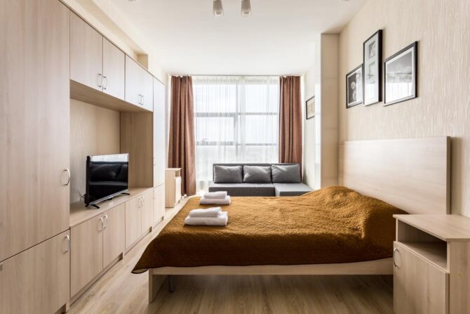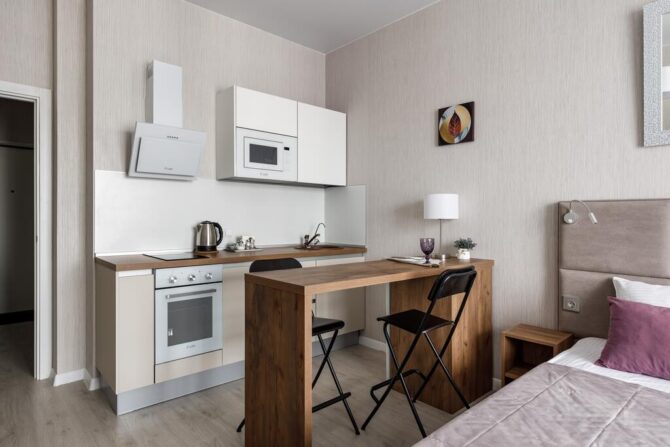 Новый апарт-отель (открыт в 2018 году) находится в 10 минутах езды от Пулково. Для размещения предоставляются студии, однокомнатные и двухкомнатные квартиры, евродвушки. Животные допускаются по предварительной договоренности и за отдельную плату. Все отели с апартаментами оборудованы мини-кухнями. Лоджии застеклены. Курение разрешается только в специально отведенных местах.