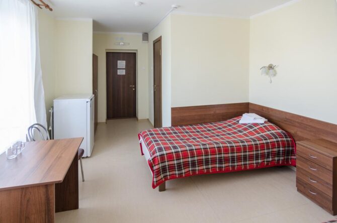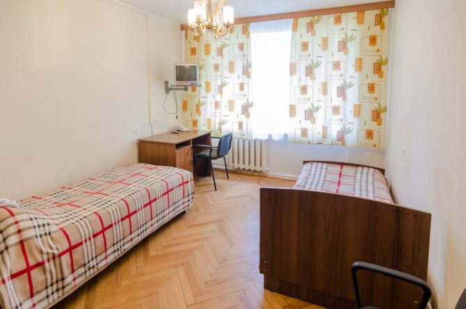 3-звездочный отель находится в Кировском районе СПб на расстоянии 3,7 км от Пулково. До метро «Проспект ветеранов» 15 минут ходьбы. В фонде 28 семейных, одно, двух и трех спальных номеров улучшенного класса. С животными нельзя. Завтрак не предусмотрен. Оборудована общая кухня.