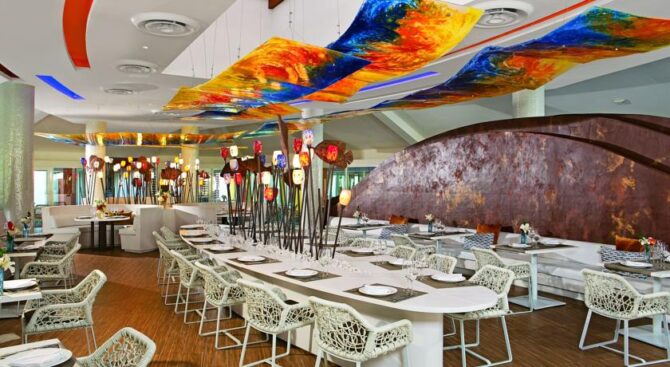 Majestic Elegance – Punta Cana предлагает своим гостям посетить его рестораны и лаунж-бары, где можно попробовать как местные кулинарные изыски, так и блюда европейской и японской кухонь.