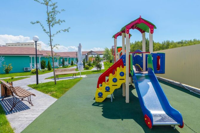 Практически все отели Анапы направлены на отдых родителей с детьми. Мам и пап больше всего интересует недолгая дорога до места отдыха от аэропорта, наличие детских развлечений и полноценное питание. Все этим условиям отвечает Alean Family Resort & SPA Doville 5* Ultra All Inclusive. 6 км – это 5-10 минут езды, которые вытерпит даже самый непоседливый ребенок. Гостиничный комплекс предлагает весь спектр услуг, способный удовлетворить и родителей, и их детей.