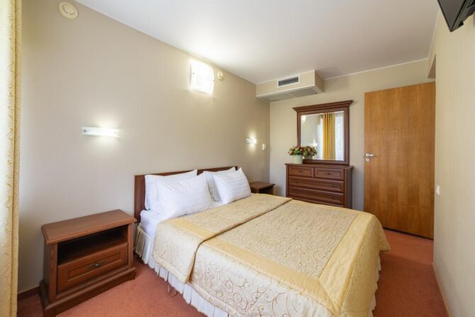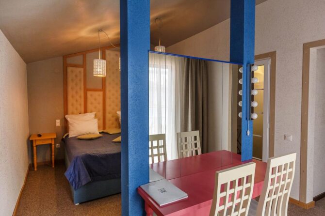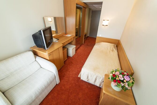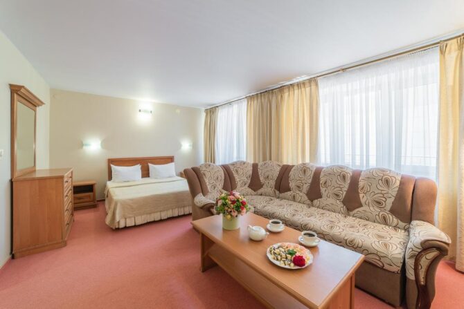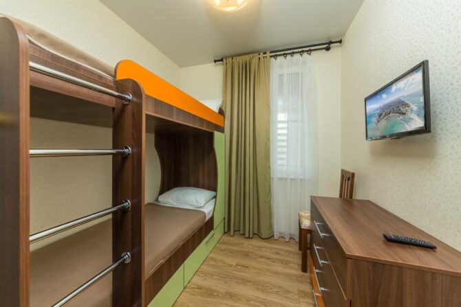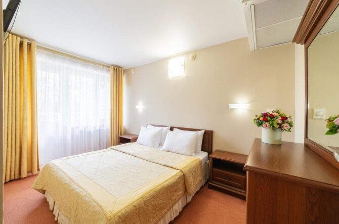По внешнему виду этот 3-звездочный отель напоминает улучшенный санаторий советских времен. Трехэтажные корпуса с большими балконами в каждом номере, скромный интерьер, классическая столовая. Только бассейн с лаундж-зоной выдает дыхание современности. Гостиница находится в городской черте Анапы (20 км от аэропорта, 10 минут ходьбы до моря). По запросу организуется частный трансфер. Утром накрывается завтрак в формате «шведский стол», который включен в стоимость проживания. Городские отели хороши тем, что обедать и ужинать можно в любом из многочисленных кафе Анапы.