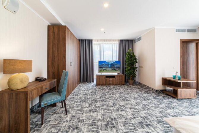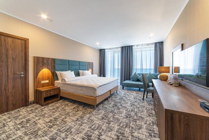Концепцией 5-звездочного отеля является организация отдыха для детей и родителей. Стильная архитектура и элегантный дизайн помещений настраивает на получение 100% сервиса. Стабильная наполняемость номерного фонда гостиничного комплекса обеспечивается за счет близости к аэропорту (6,7 км). В номерном фонде 354 номера 11 категорий комфорта. Пакет «Семья и море» гарантирует обслуживание по системе All Inclusive. Отель занимает большую зеленую территорию, на которой расположены комплекс бассейнов с детской зоной, детская игровая площадка, веревочный городок, бар, эстрадная сцена для проведения концертов. Основной ресторан — Green Tea работает в формате шведской линии. К услугам гостей: спа-центр с термальной зоной, собственный пляж.