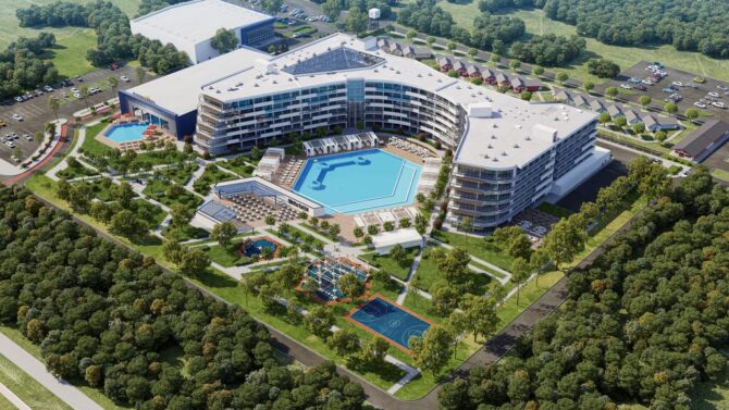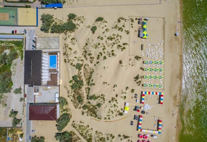 В 7 км от аэропорта расположен уникальный спортивно-оздоровительный комплекс «ВолейГрад». Он был построен в 2007 году и изначально задумывался, как центр волейбола. На его базе проводятся всероссийские сборы волейболистов, соревнования. Одновременно отель принимает всех желающих отдохнуть на море и поправить здоровье. В инфраструктуру входят: 3 гостиничных комплекса на 115 номеров, 4 коттеджа с апартаментами, два коттеджа с 5-ю спальнями с собственной турецкой баней, спортивные площадки, детский клуб, открытые детский и взрослый бассейны, тренажерка. Основной ресторан «ВолейГрад» рассчитан на 150 посадочных мест, работает по шведской системе. Ресторан «20/19» специализируется на средиземноморской кухне. Спорт-бар предлагает блюда гриль и просмотр трансляций соревнований. Пиццерия «Жарушка» готовит пиццу в настоящей дровяной печи.