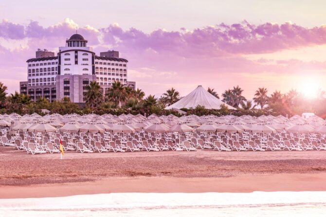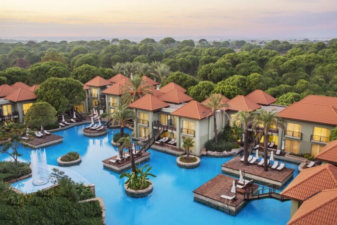 5-звездочный отель расположен в 12 км от аэропорта и 17 км от центра города. Он построен прямо на популярном пляже Lara. На территории работают рестораны турецкой, средиземноморской, мексиканской и китайской кухни. К услугам гостей анимация, детский клуб, пляж, водные виды спорта, развлекательные мероприятия. Специалисты спа-центра предлагают оздоровительные процедуры, программу скраб-пена, разнообразные техники массажа. Для занятий спортом на территории отеля построены теннисные корты, волейбольная площадка и поле для мини-гольфа. Ночное шоу заканчивается дискотекой.