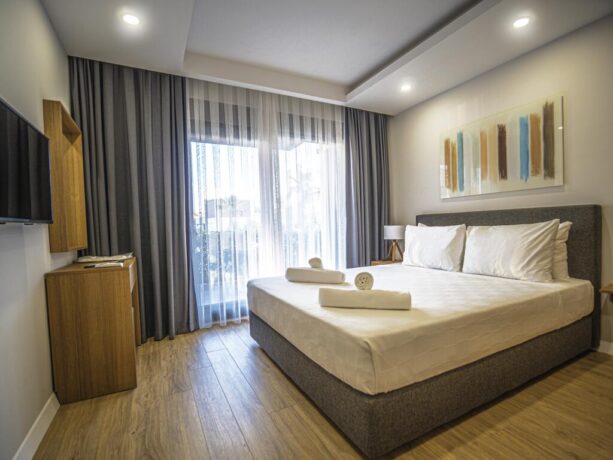 В 6 километрах от аэропорта находится гостиничный комплекс Veranda Beach Suites. Окна номеров выходят на город и на море. Гости могут отдохнуть на частном пляже. На территории отеля расположен открытый сезонный бассейн, сад, терраса для отдыха, бар. В ресторане подают блюда по меню в течение всего дня. Доставка еды в номера осуществляется круглосуточно. Трансфер от/до аэропорта предоставляется по запросу.