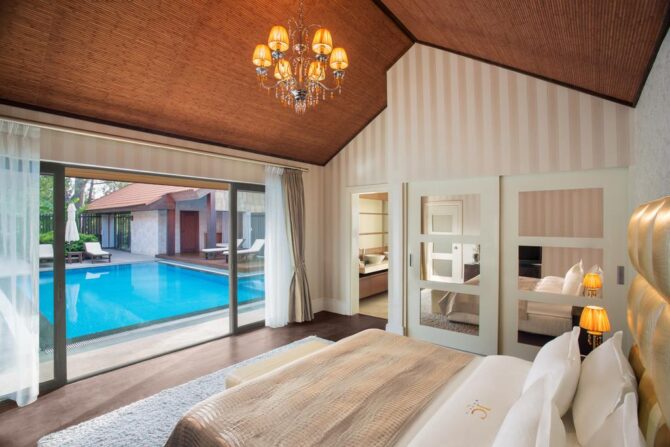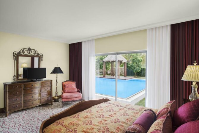Фешенебельные гостевые виллы 5-звездочного отеля расположены в окружении шикарных садов. До аэропорта 11,1 км. Организован трансфер. Для размещения предоставляются 43 домика с собственной пляжной территорией и абсолютным разным дизайном интерьеров. Например, спа-центр с массажными кабинетами оформлены в азиатском стиле. Здесь можно заказать не только тайский массаж, но и принять грязевые ванны и посетить косметолога. Опытные инструкторы помогут в организации занятий спортом, прыжков с парашютом или аквабайка. Отель предлагает формат проживания по системе «Ультра все включено».