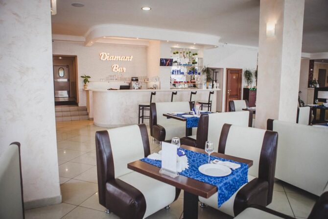 В 14 км от аэропорта в тихом поселке Денежниково возле города Бронницы расположен гостиничный комплекс «Диамант». По предварительному заказу организуется трансфер. Каждого гостя ожидают приятные подарки. Местный парк — это отличное место для прогулок. Недалеко находятся Иоанно-Предтеченский монастырь и усадьба графа Талызина. Монастырь действующий. Родовое имение – памятник архитектуры и садово-паркового искусства. В летний сезон гости могут бесплатно взять велосипеды в пункте проката. Предусмотрена аренда автомобилей с почасовой оплатой. В ресторане готовят блюда европейской кухни. Завтрак накрывается в формате шведского стола. Транспортная остановка находится в 5 минутах ходьбы от отеля.