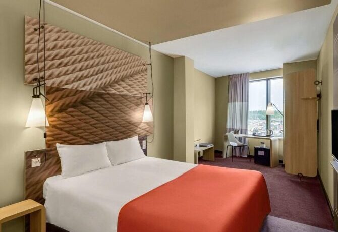 В 5 минутах езды (6 км) от Домодедово по трассе А-105 расположен 3-звездочный отель на 152 номера. В фонде – стандарты, улучшенный твин, семейный с софой. К услугам гостей: интернет, печать и распечатка (дополнительно оплачивается), банкомат, частный паркинг. На территории работают ресторан Ibis Kitchen и круглосуточный бар. Утром сервируется завтрак. Обед и ужин подается по меню. Отель эконом-класса предназначен для отдыха в поездках.