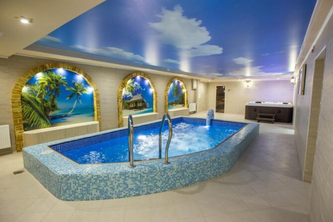 Дизайнерский гостевой дом расположен в Раменском районе, деревне Каменное Тяжино, в 16 км от аэропорта Домодедово. Ехать по Рязанскому шоссе. Каждый номер оформлен в индивидуальном стиле. Основные тематики: страны мира, увлечения, стиль жизни, цветовые предпочтения. Ресторан на 120 посадочных мест имеет открытую веранду и роскошно оформленную площадку «Крыша». Лайндж-зона с клубным залом и караоке оснащена световым и звуковым оборудованием, мультимедиа. Изюминка отеля – это его спа-центр. Здесь предоставляются оздоровительные процедуры, есть сауна, бассейн, гидромассажная ванна, тренажерный зал. В детской купальной зоне установлен фонтан. Особое место в сервисе арт-отеля занимает детский клуб. Для малышей организован мини детский сад по системе Монтессори, кружки по интересам, экспериментариум, ЛЕГО-клуб, игровая комната. Регулярно организуются праздники и развлекательные мероприятия.