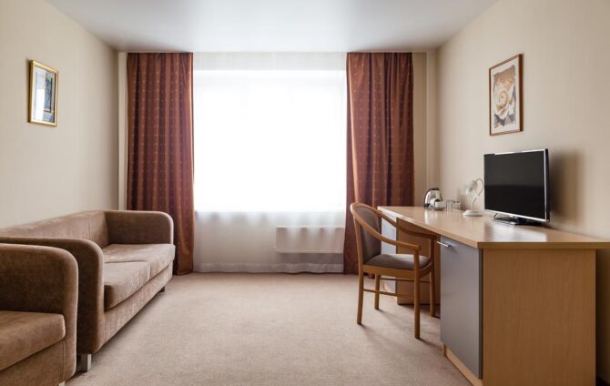 Эта гостиница также находится на территории аэропорта в нескольких метрах от терминала. К услугам путешественников двухместные и семейные номера, апартаменты. В стоимость проживания включен завтрак. В случае раннего отлета формируется ланч-бокс. Гостей кормят ужином. При многочасовом транзите можно съездить в Екатеринбург, пройтись по магазинам, посмотреть достопримечательности или посетить культурное мероприятие. Аэроэкспресс ходит до ж/д станции «Первомайская» (это центр города) всего 2 раза в день. Лучше добираться на автобусе. Он идет до ж/д вокзала и проезжает по центральным улицам Екатеринбурга. Интервал движения составляет 10-20 минут. На ул. Малышева можно выйти возле небоскреба «Высоцкий» и начать знакомство с уральской столицей на смотровой площадке с высоты 186 метров.