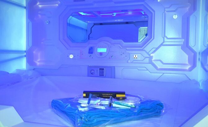«Найти этот отель в здании аэропорта очень просто. Везде есть указатели, а цены за проживание указаны на стойке регистрации. Можно точно рассчитать время для сна, чтобы хватило сил на прогулку по Екатеринбургу и дальнейший перелет. При заселении администратор выдает плед, наушники и другие принадлежности. Дизайн капсулы выполнен таким образом, что не страдаешь от замкнутого пространства» Анастасия, Россия