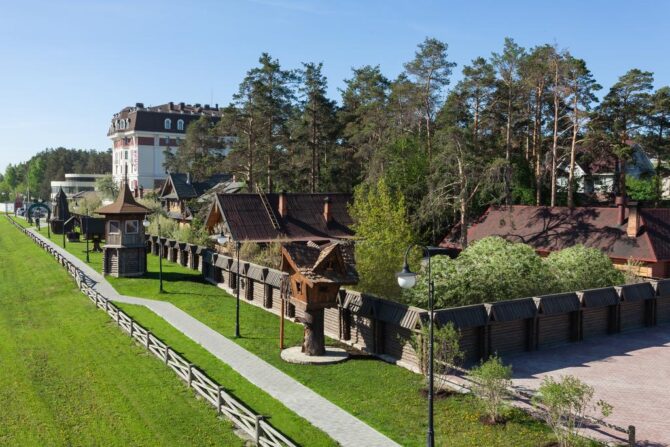 Желающим провести свободное время на природе предоставляется возможность расселиться в сетевом отеле бренда Ramada. Он находится в 10 км от аэропорта по Кольцовскому тракту. Комплекс предлагает: комфортабельные номера, отдельные коттеджи, спа-центр с 2-мя бассейнами, сауной и паровой баней. К услугам гостей – парикмахерская, фитнес-зона и гидромассажная ванна. Спа-услуги и завтрак по шведской системе входят в оплату проживания. Обеденный зал ресторана Le Vicomte выходит окнами на живописное озеро. Летом столики выносят на берег водоема. Лобби-бар Boogie’s начинает работать после полудня. В этом месте любят останавливаться участники выставки «Екатеринбург-ЭКСПО». Она находится в 5 минутах езды от комплекса.