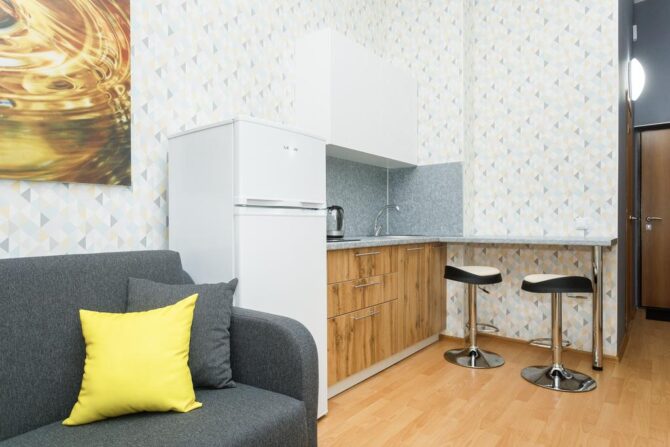 Чуть подальше (2 км от аэропорта), но также в поселке Кольцово, расположены уютные апартаменты с одной спальней. Номера сдаются посуточно. Цены приемлемые, владельцы регулярно проводят акции со скидками. Интерьер оформлен в современном стиле, в номере оборудована полноценная кухня. В 100 метрах от дома находится кафе «Арго», в котором можно недорого пообедать и поужинать.
