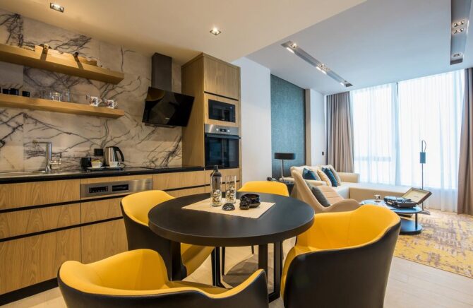 Отель располагает 171 номерами с кондиционером и бесплатной водой в бутылках. Кровати укомплектованы постельными принадлежностями премиум-класса. Гостям предоставляется выбор подушек. Кухни оснащены посудомоечной машиной и кофеваркой.
