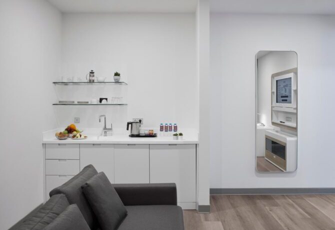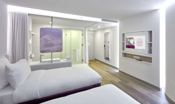 Отель Yotelair делится на две части. Одна расположена перед иммиграционным и охранным контролем, она предназначена для тех, кто вылетает из Стамбула и хочет прибыть в аэропорт пораньше. Скажем, в предыдущий вечер. Во вторую часть отеля можно попасть после прохождения контроля безопасности и иммиграции, она предназначена для стыковки пассажиров.