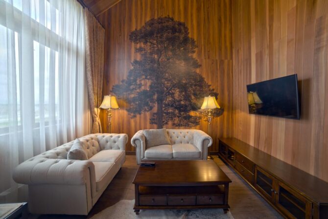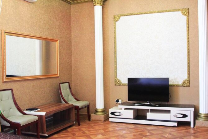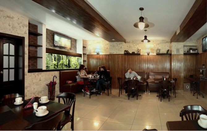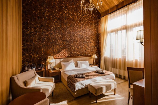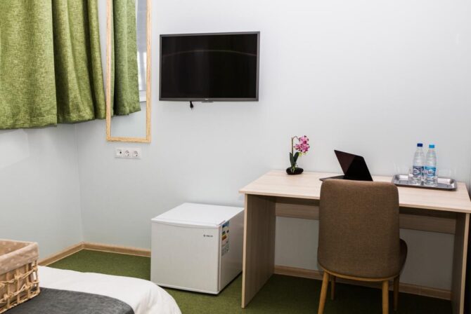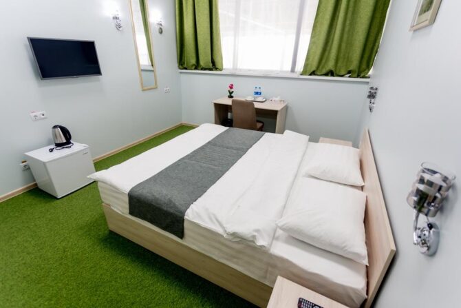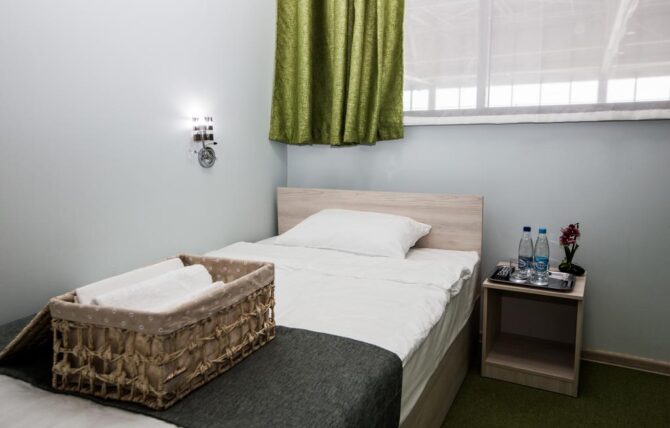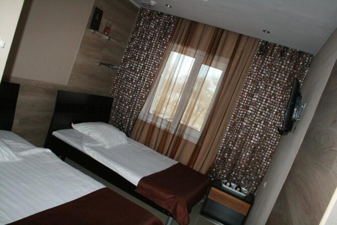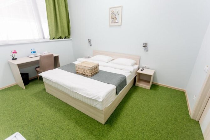 Приятный 3-звездочный отель оформлен в классическом понимании системы гостеприимства. Небольшие уютные номера в пастельных оттенках, стулья с высокими удобными спинками, прикроватный торшер, плотные шторы с воздушными тюлевыми занавесками и живые комнатные цветы – всё это напоминает дом из детства. Утром в ресторане накрывается континентальный завтрак с привычным омлетом и кашей. В течение дня можно заказать блюда по меню. Повар специализируется на русской кухне. Трансфер предоставляется по запросу.