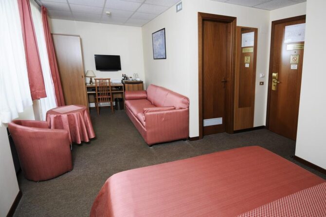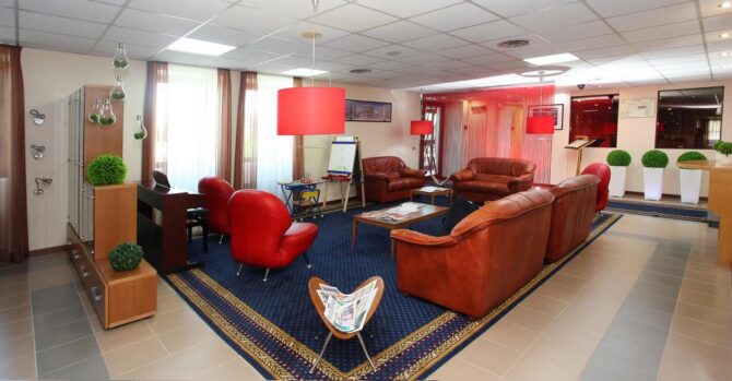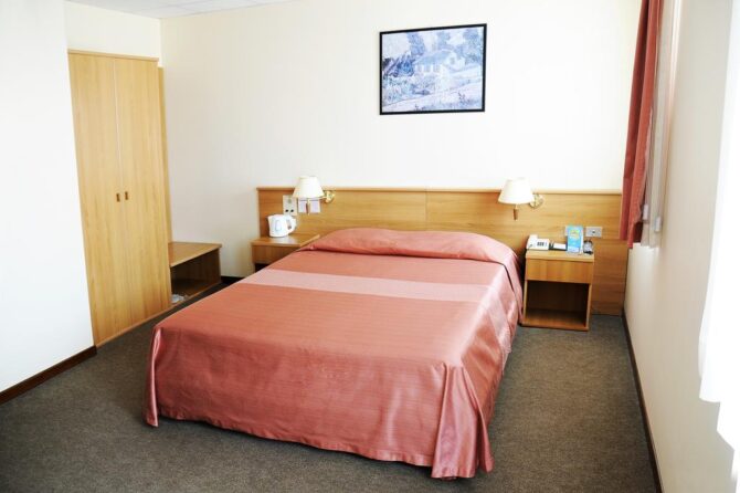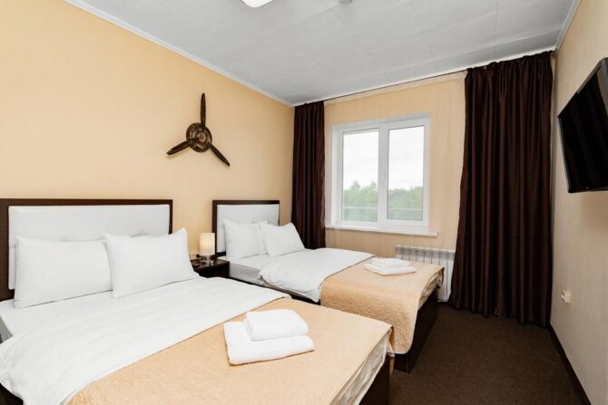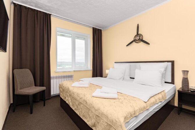 В 10 км от аэропорта расположен отель, работающий в формате «ночлег-завтрак». Богатый номерной фонд позволяет забронировать как обычный стандарт, так и номер повышенной комфортности. В будние дни возможен полупансион с обедом за дополнительную плату. К услугам гостей сауна с бассейном (посещение платное), бар. С животными не принимают.